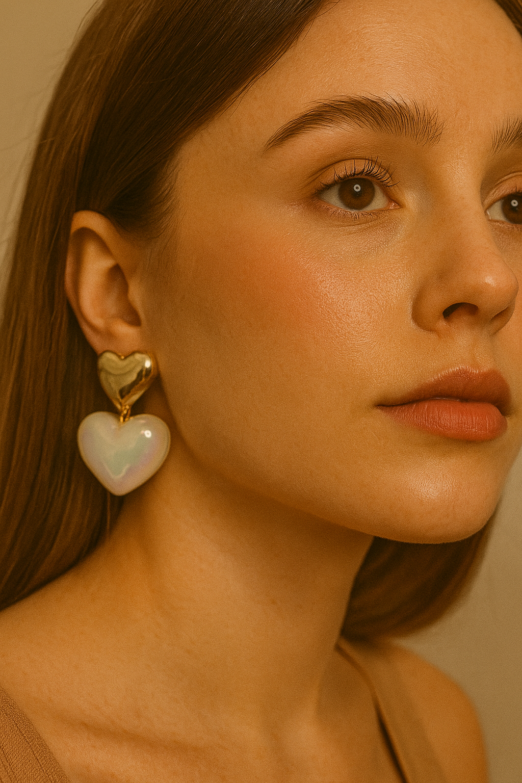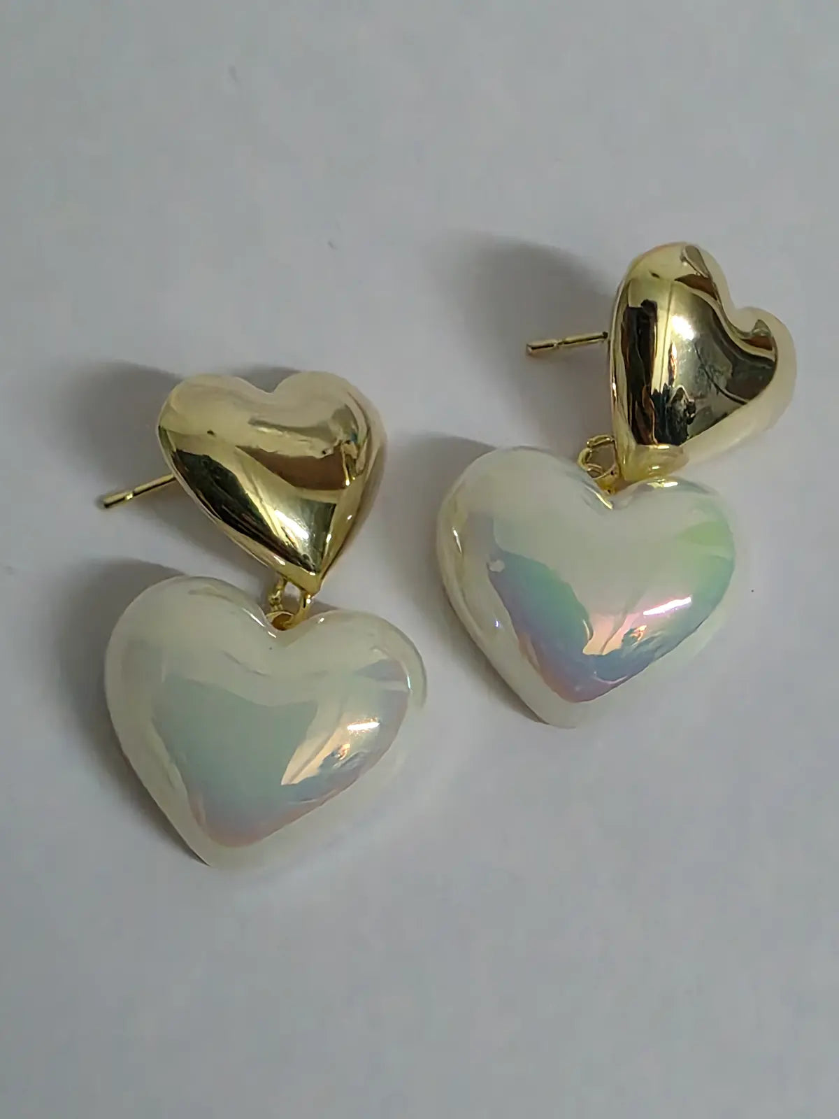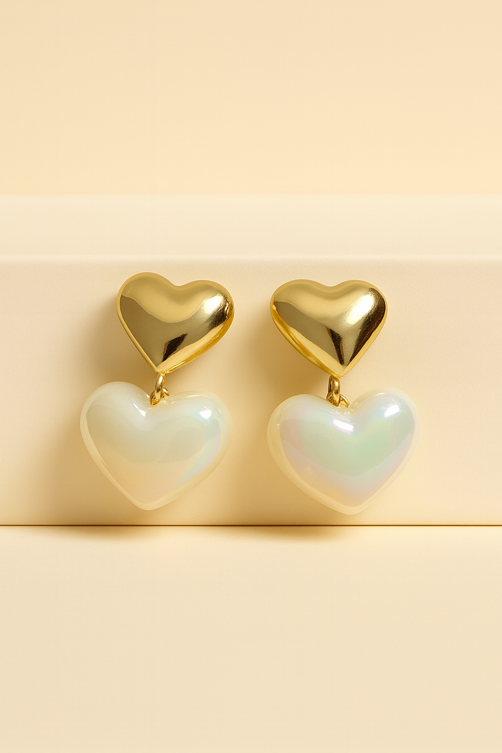 Duo-tone heart earrings featuring a warm golden finish with crisp white accents for a striking contrast. Timeless and elegant design that adds a romantic touch to any outfit. Perfect for both everyday wear and special occasions.