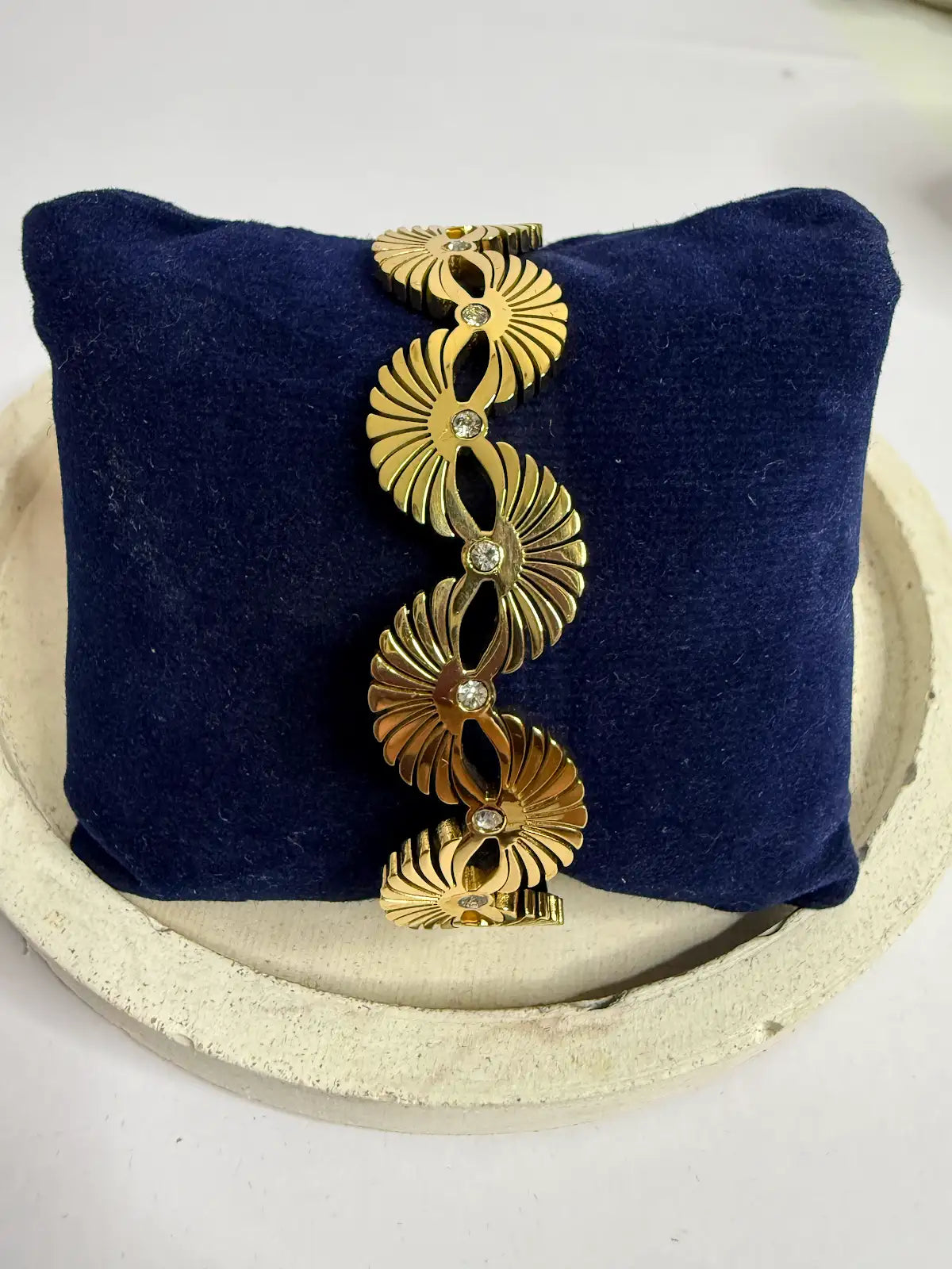 Features a unique half flower design adorned with sparkling diamonds The intricate flower motif adds a touch of feminine elegance Perfect for special occasions or daily wear to elevate any outfit A timeless piece that combines floral beauty with luxurious sparkle