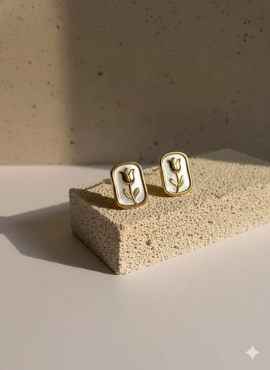 Delicate gold-toned studs featuring an elegant floral outline design. Lightweight and comfortable for everyday wear. Perfect for adding a subtle, feminine touch to any outfit. Crafted with quality finishing for lasting shine.
