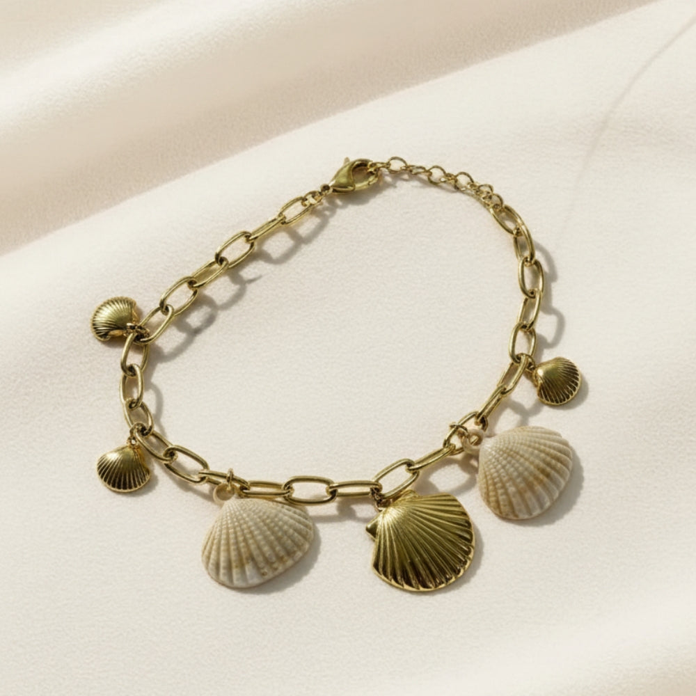 Golden & White Shells Bold Chain Bracelet