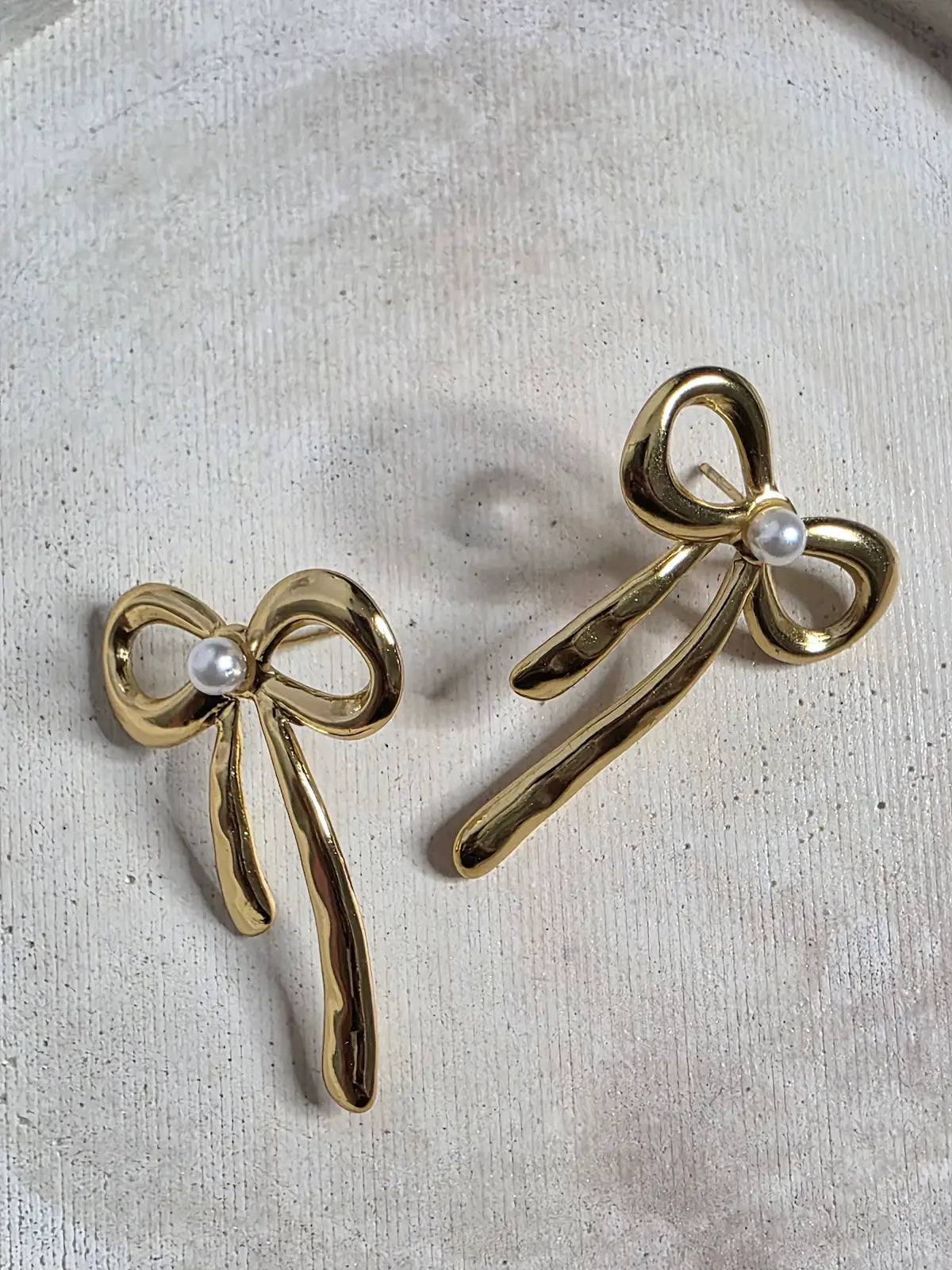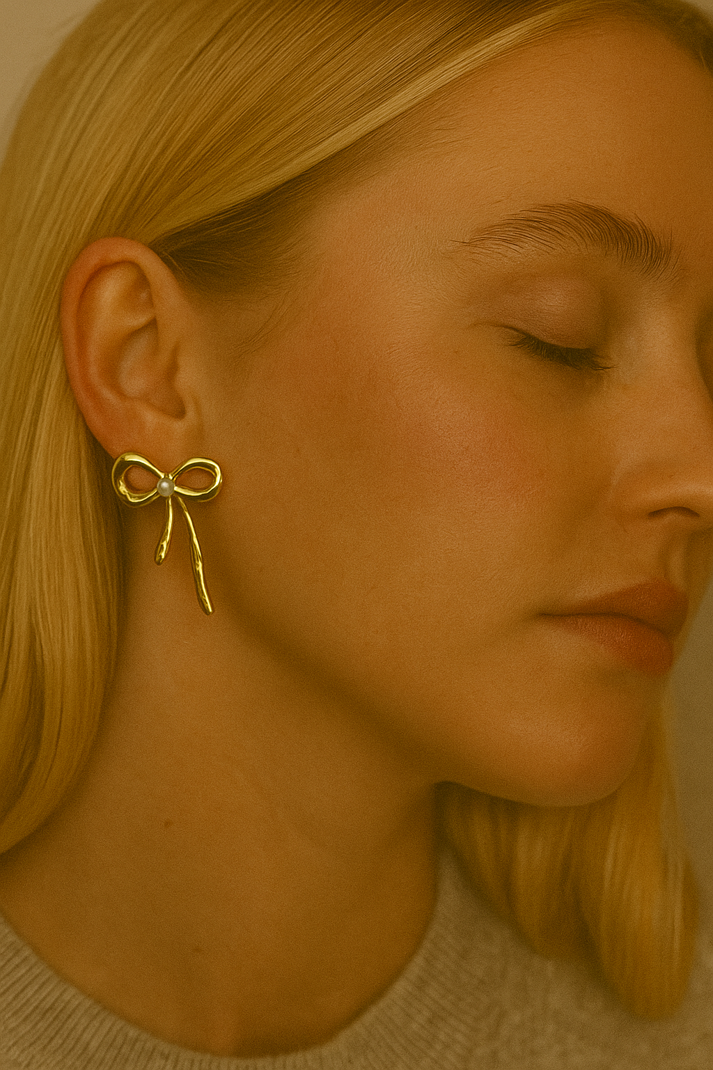 Subtle, delicate bow design with a soft pearl accent. Lightweight and perfect for everyday elegance. Adds a gentle, feminine touch to any look.