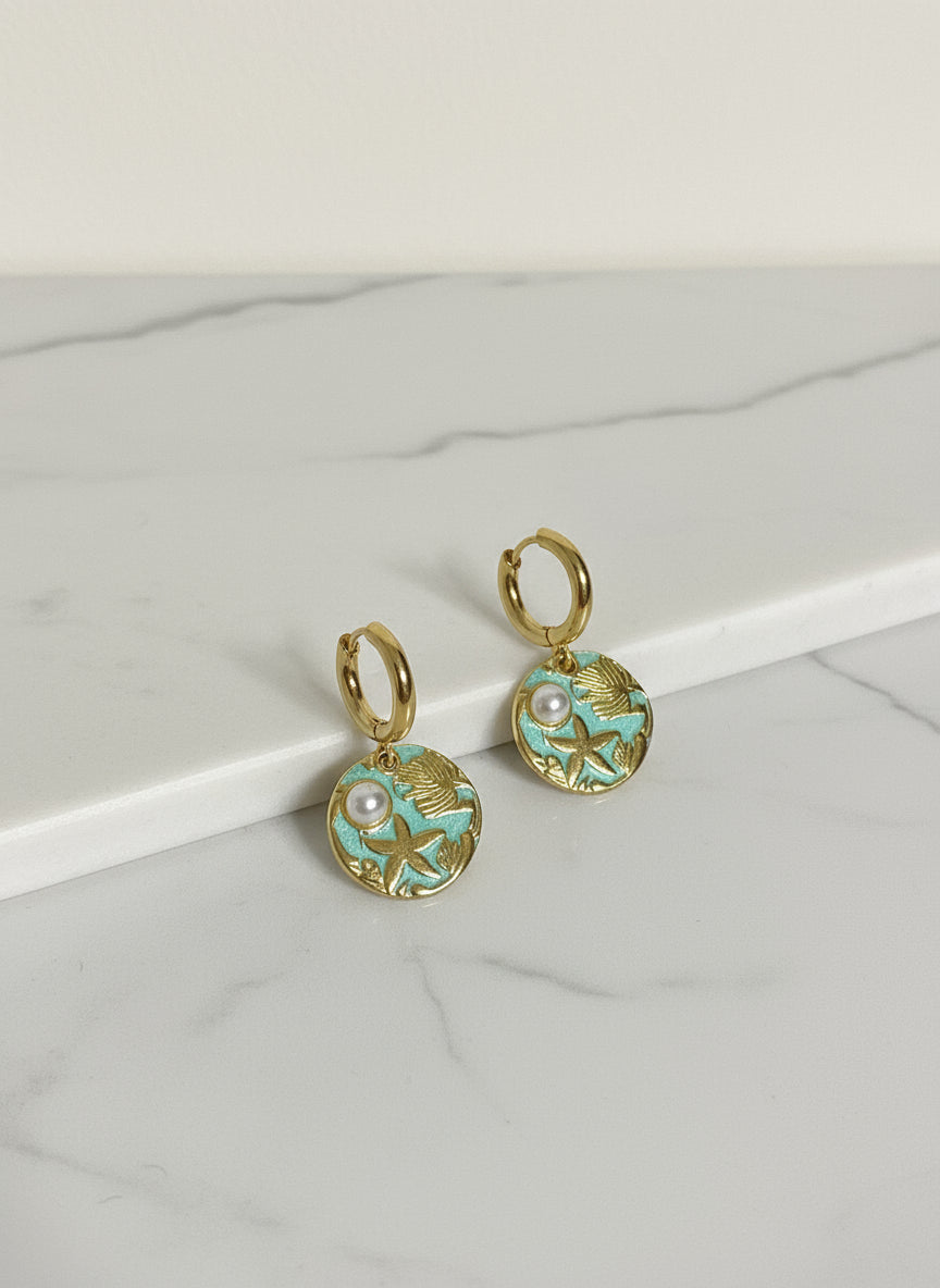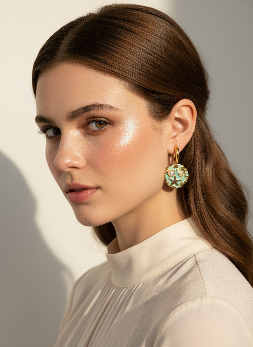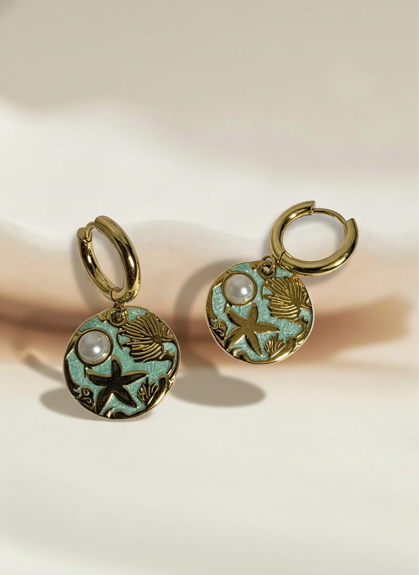 -Combines classic bali design with playful ocean motifs for a fresh, stylish vibe. - Crafted in a refreshing sea green hue that adds a pop of cool, sophisticated color to any      look. -Features a timeless bali hoop design for effortless, everyday elegance. -Made with durable, anti-tarnish materials to ensure lasting shine...