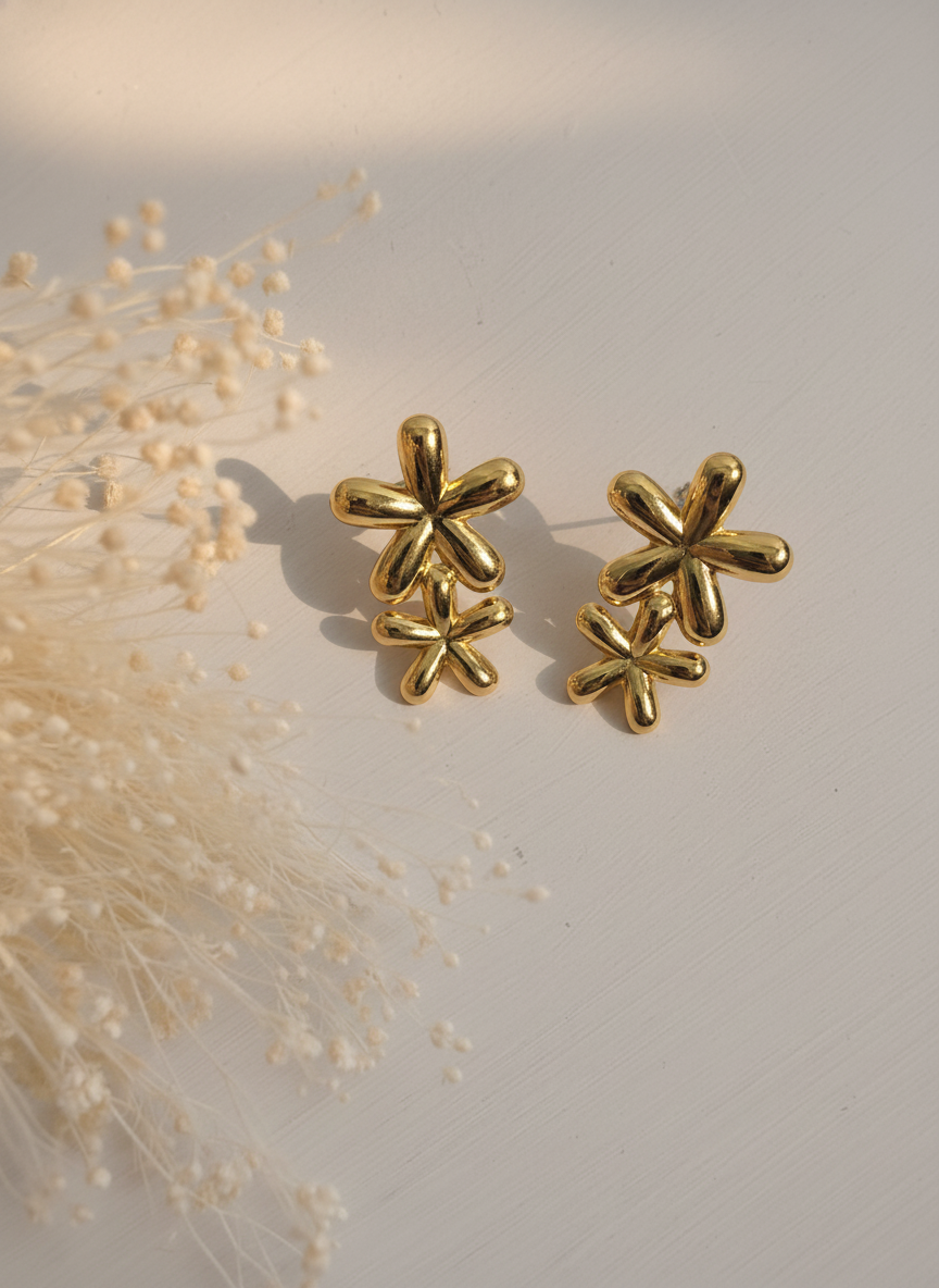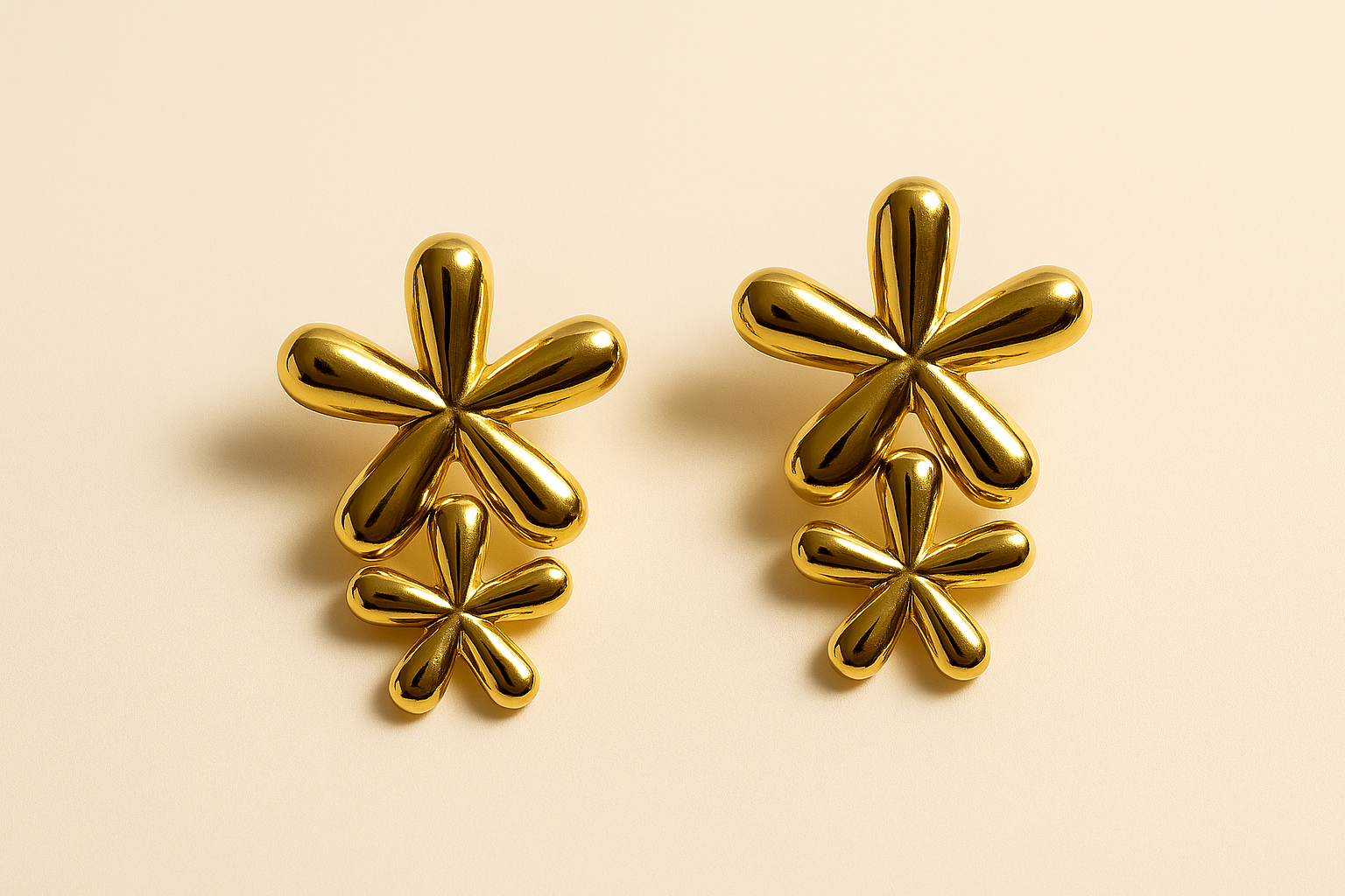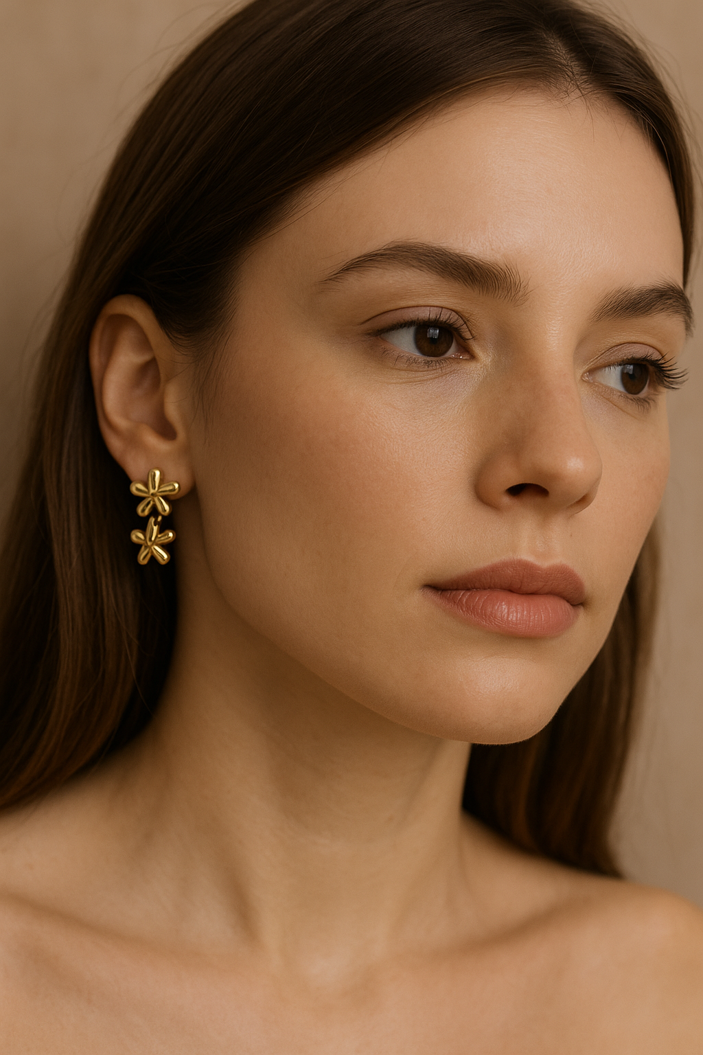 Two beautiful flowers stacked vertically for a chic look. Fixed design, adding elegance without movement. Perfect for adding a floral touch to any outfit. Lightweight and comfortable for all-day wear.